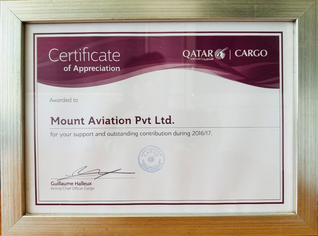 Awarded by Qatar Airways Cargo for the year 2016/2017